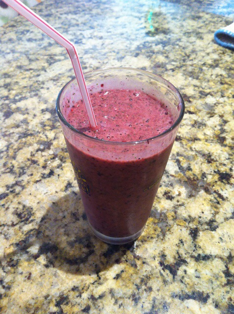 The frozen berries gives it the smoothie consistency and you don’t have to add any dairy. I also always put my frozen items at the top of the blender so it blends faster and it is easier on your machine.